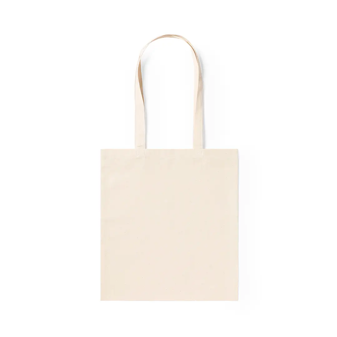 Tasche aus Baumwolle, 240 g/m2, in natürlicher Farbe. Mit 70 cm langen verstärkten Griffen und genähter Oberfläche. Widerstandsfähigkeit bis zu 9 kg Gewicht