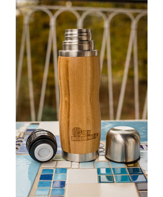 Hochwertige, kleine Thermoskanne aus Bambus und doppelwandigem Edelstahl. Material: Bambus, Edelstahl Veredelung: Gravur Für ein Angebot bitte Mail an: office@eco-merchandise.com