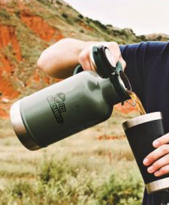 Doppelwandige Edelstahlflasche mit Auslaufsicherung. Den "Öko Tanker" gibt es in zwei unterschiedlichen Grössen: 946ml (EK945) und 1900ml (EK1900) Farben: khaki und schwarz Veredelung: Gravur oder Tampondruck Wärme/Kälte: 8 Stunden heiß Preise erfragen unter: office@eco-merchandise.com 24 Stunden kalt
