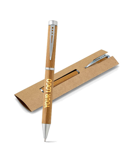 Kugelschreiber. Bambus. Metallclip. In Geschenketui aus Karton. ø11 x 137 mm | Etui: 155 x 40 mm