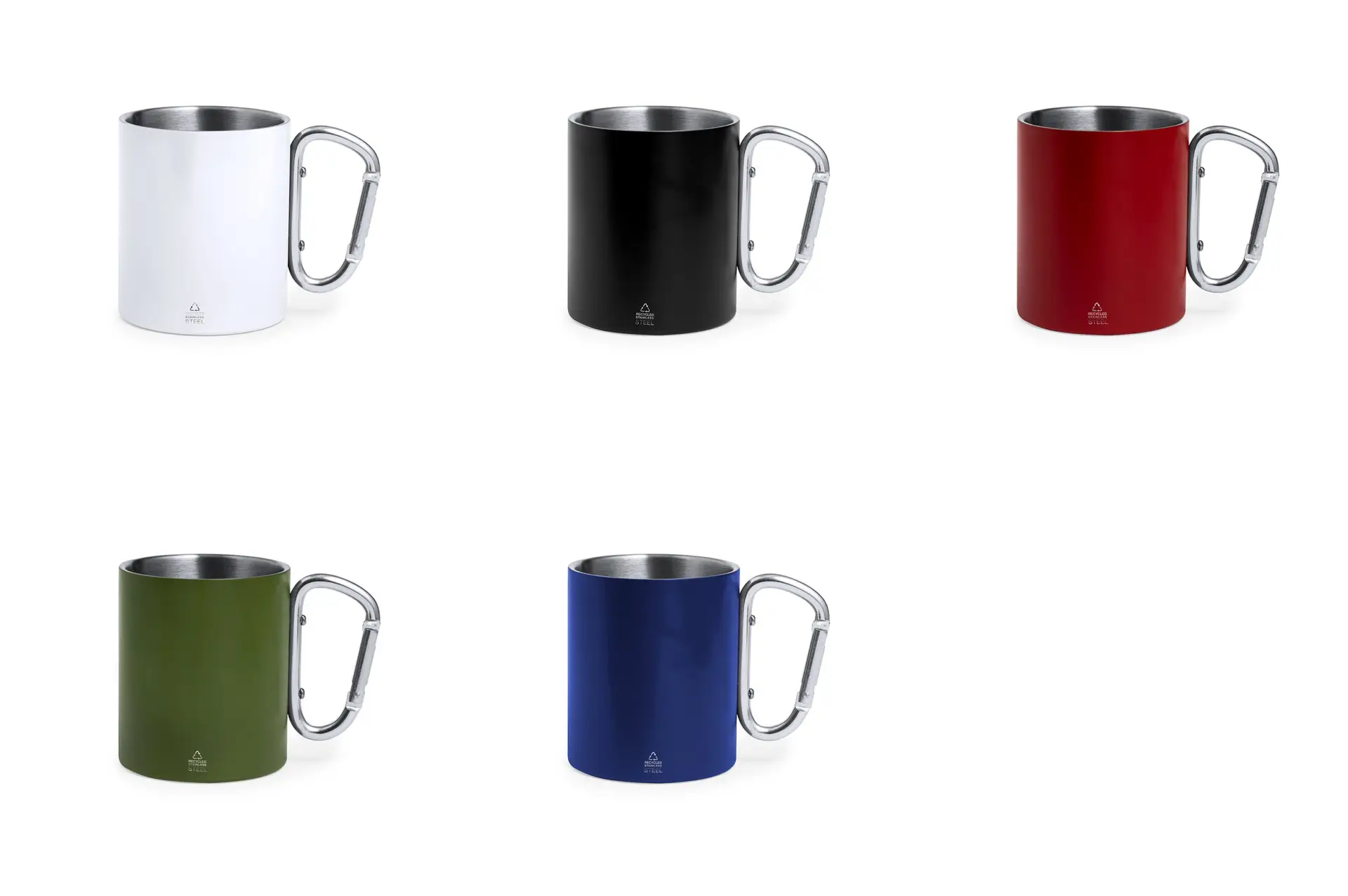 Doppelwandiger Becher aus recyceltem Edelstahl mit 300ml Fassungsvermögen. Mit Karabinergriff für einfaches Tragen und Körper in matten Farben.